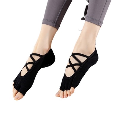 • Sommer Tynne Pilates Grip Yoga Sokker - Sklisikre Fem Tå Sokker for Innendørs Trening Sort