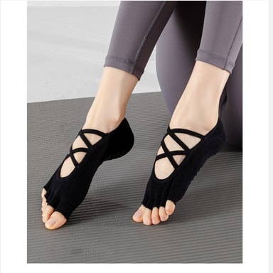 Fem-tå design og fleksibilitet: Den innovative fem-tå designen til disse yogasokkene fremmer naturlig fotjustering og forbedrer fleksibiliteten. Ved å skille hver tå, gir disse sokkene større bevegelsesfrihet og forbedret balanse. Den åpne tådesignen lar tærne puste og gir en mer barfotfølelse, og forbedrer forbindelsen din til bakken. Denne designen bidrar også til å forhindre blemmer og gnagsår, og sikrer en komfortabel og hyggelig treningsopplevelse. Fem-tå designen oppmuntrer til naturlig spredning av tærne, noe som kan forbedre fotstyrken og stabiliteten over tid. Opplev friheten og fleksibiliteten til barfot trening med det ekstra grepet og komforten til disse fem-tå yoga sokkene.