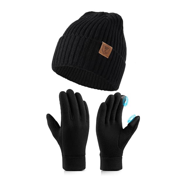 • Varm strikket lue og hanskesett