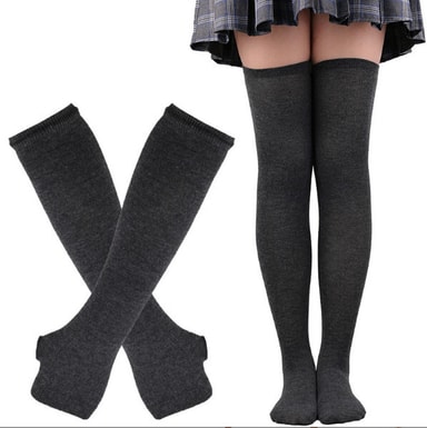• Stripete sokker og hansker sett for cosplay Mørk grå