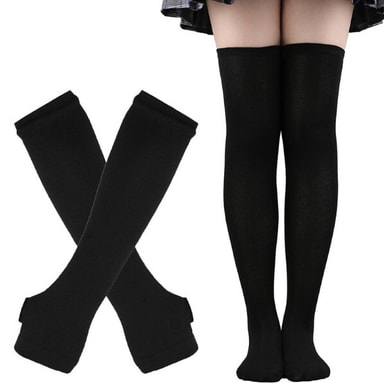 Fullfør cosplay-utseendet ditt med dette stilige settet med stripete sokker og hansker. dette settet sikrer en behagelig passform for de fleste hånd- og fotstørrelser. Ideell for Halloween-kostymer, cosplay-arrangementer, temafester og mer.Les mer om produktet