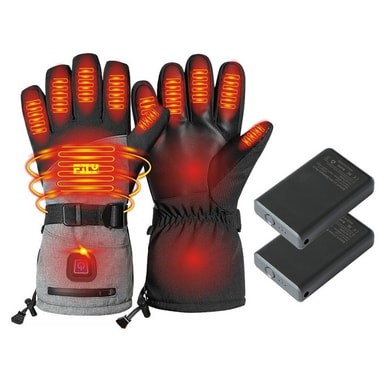 Vann- og vindtett design: Hold deg beskyttet mot elementene med disse vanntette og vindtette oppvarmede hanskene. Det ytre laget er konstruert av et spesialisert vanntett stoff som effektivt avviser vann og snø, og holder hendene tørre og komfortable under våte forhold. Den vindtette designen forhindrer at kald luft trenger inn i hanskene, noe som ytterligere forbedrer varme og komfort. Disse hanskene er perfekte for friluftsentusiaster som liker aktiviteter som ski, snowboard, isfiske eller snøscooterkjøring, og gir pålitelig beskyttelse mot elementene og sikrer en komfortabel og hyggelig opplevelse. Den robuste konstruksjonen sikrer at disse hanskene tåler påkjenningene ved utendørs bruk, og gir langvarig ytelse og beskyttelse.