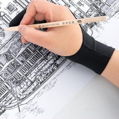To fingerhansker: Tegnehansker med to fingre innpakket design, fungerer perfekt for å skissere, fargelegge, fargelegge eller tegne med blyanter på papir og digital tegning på iPad, grafikkskjerm/nettbrett, lysboks, etc.