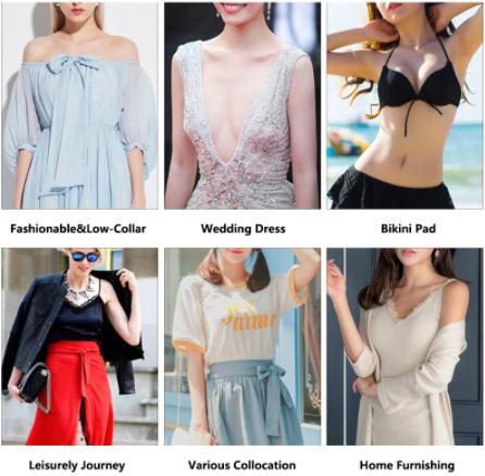 Usynlig BH: Brysttapen fungerer som en usynlig BH som gjør at brystvorten ikke er synlig gjennom klærne. Samtidig unngår du skulderstropper og andre deler som en vanlig BH har og som kan titte frem eller på annen måte forstyrre antrekket ditt.