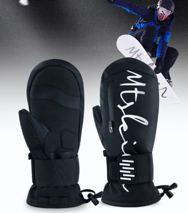 Justerbart elastisk håndleddsbånd : Disse hanskene er utstyrt med et justerbart elastisk bånd i håndleddet, og gir en sikker passform og forhindrer at kald luft og snø kommer inn. Den justerbare funksjonen har plass til forskjellige håndleddstørrelser for en tilpasset passform.