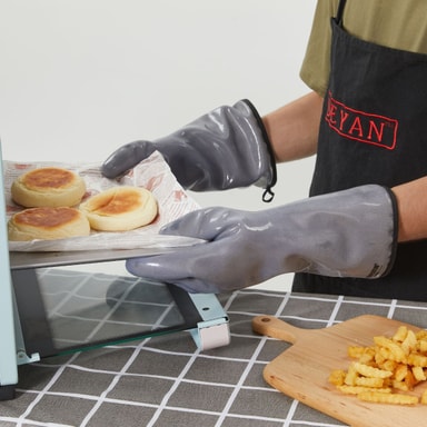 Allsidig bruk: Disse varmebestandige hanskene er utrolig allsidige, noe som gjør dem egnet for et bredt spekter av bruksområder utover bare baking. Bruk dem til grilling, BBQ, matlaging, kjøkkenrengjøring, kjølelager og til og med laboratoriearbeid. Deres eksepsjonelle varmebestandighet og vanntette egenskaper gjør dem ideelle for håndtering av varme retter, rengjøring av fete overflater og arbeid i kalde omgivelser. Den sklisikre designen sikrer et sikkert grep, og forhindrer ulykker og søl. Enten du er en profesjonell kokk, en hjemmekokk eller noen som trenger pålitelig håndbeskyttelse i forskjellige omgivelser, er disse hanskene et viktig verktøy. Deres allsidighet gjør dem til et verdifullt tillegg til ethvert kjøkken, verksted eller laboratorium, og gir pålitelig beskyttelse og komfort i en rekke oppgaver.