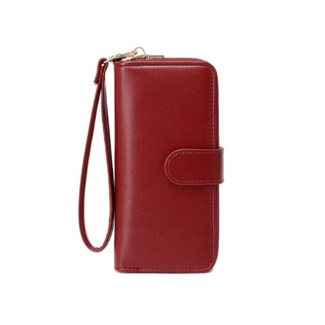 • PU Stor kapasitet flerkortspor Glidelås RFID-blokkeringskortholder lommebok Rød