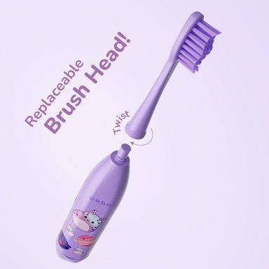 Tannbørsten har et kompakt, lett design med et morsomt Squishmallows-tema, noe som gjør den enkel for barn å holde i og glede seg over å bruke hver dag.