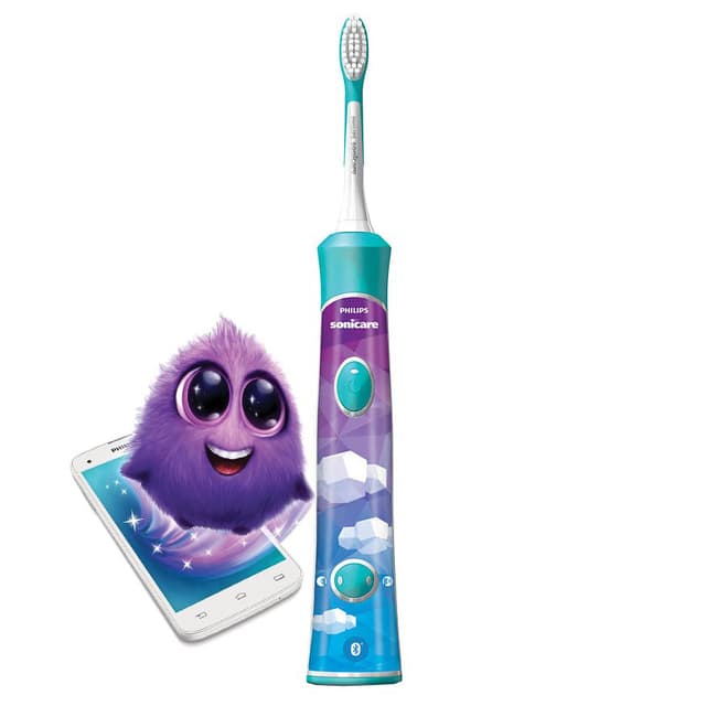 Interaktiv pussing med app: Du kobler den elektriske tannbørsten til appen via Bluetooth. Når du slår på Bluetooth på mobilen eller nettbrettet kobler den elektriske tannbørsten seg til automatisk. Få barna til å pusse tennene lenger og bedre takket være den interaktive appen med figuren Sparky. La barna følge med på appen hvor lengde de pusser og hvor mye som gjenstår. Appen gir flere nyttige tips til hvordan tennene bør rengjøres. Målet er å oppnå pusseøkter på to minutter, som er den tiden tannleger anbefaler. Sparkly veileder barna til å øke pussetiden gradvis i løpet av 90 dager til de oppnår de anbefalte 2 minuttene.