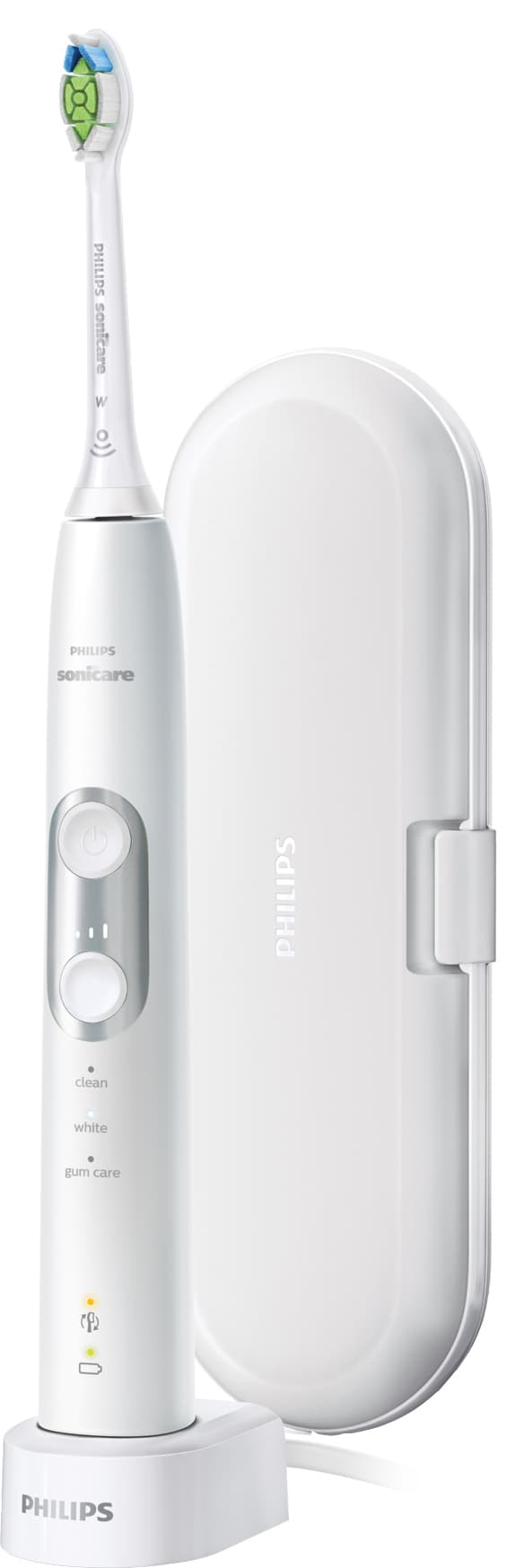 Philips Sonicare ProtectiveClean 6100 elektrisk tannbørste hjelper deg få et hvitere smil, samtidig som den skånsomt pleier tannhelsen din. Tannbørsten kommer med en trykksensor, 3 moduser, 3 intensiteter og en BrushSync-funksjon.Les mer om produktet