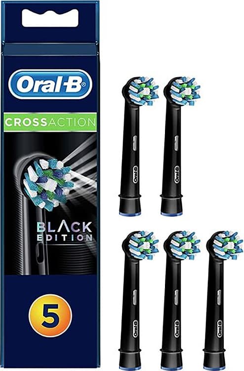 Oral-B CrossAction EB50 Erstatningsbørste Black Edition - 5 Pack Pakke med 5 CrossAction børstehoder som passer til alle Oral-B Pro, Trizone og Vitality elektriske tannbørster. Cross Action børstehoder er designet for å rense dypt mellom tennene og derfor fjerne mer plakk enn en vanlig tannbørste.