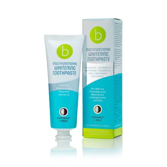 Beconfident® Multifunksjonell Whitening Tannkrem er utviklet sammen med verdensledende tannleger for å være den mest komplette tannblekende tannkrem på markedet. I tillegg til å bleke tennene, beskytter den mot karies og plakk, styrker tannkjøttet og fjerner flekker og misfarging. Tilgjengelig i smakene: Acai + Mint, Cocos + Mint, Strawberry + Mint, Extra Mint og Sensitive Mint.