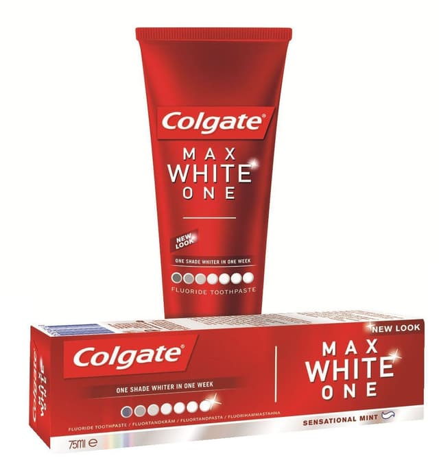 Colgate MaxWhite One med hvite mikrokrystaller inneholder ingredienser som ligner de tannlegen bruker. Du vil oppleve en gradvis reduksjon av misfarging samt at den hindrer dannelse av tannstein.