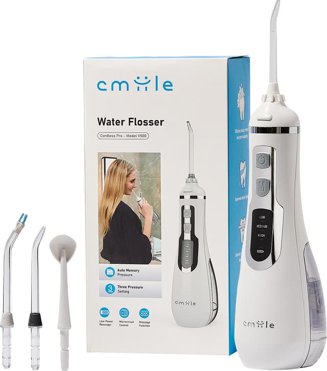 Inkluder Cmiile munnskyller i din tannrensingsrutine og oppnå et sunt og skinnende smil. Vannrenseren med fire tupper i forskjellig størrelse fjerner plakk, bakterier og matbiter mens den skånsomt masserer og renser tannkjøttet.Les mer om produktet