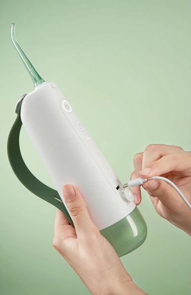 Med IPX7 vanntett klassifisering er tanntråden trygg å bruke i våte omgivelser som bad, og rengjøring av enheten under rennende vann er enkelt og trygt.