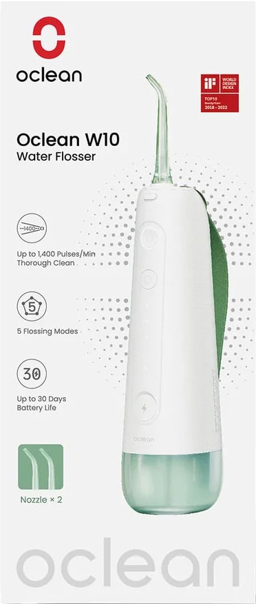 Oclean Dental W10 munnspyler C02000052 er en bærbar, vanntett enhet med en 200 ml tank, fem moduser, to munnstykker og et batteri som varer i 30 dager. Den er designet for enkel og effektiv daglig munnpleie hjemme eller på farten.Les mer om produktet