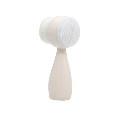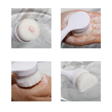 Effektiv og enkel rengjøring: Dobbeltsidig ansiktsrengjøringsbørste. Den ene siden består av et mykt børstehode med fiberhår og den andre siden består av et eksfolierende hode av silikon.