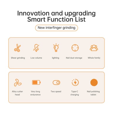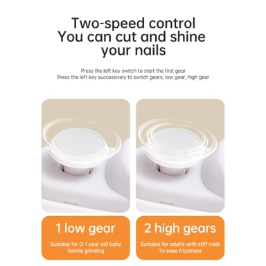 2-i-1 Elektrisk Negleklipper kombinerer trimming og sliping for sikker og enkel neglepleie. Funksjoner inkluderer barnesikring, justerbare hastigheter, LED-lys og negleskrapesamler. Perfekt for alle aldre!Les mer om produktet