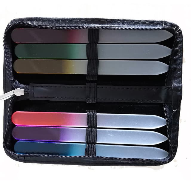 • 6-pack bærbart neglepoleringsverktøy glass neglefil med læroppbevaringsveske Flerfarget