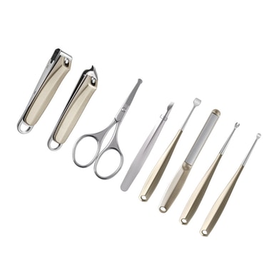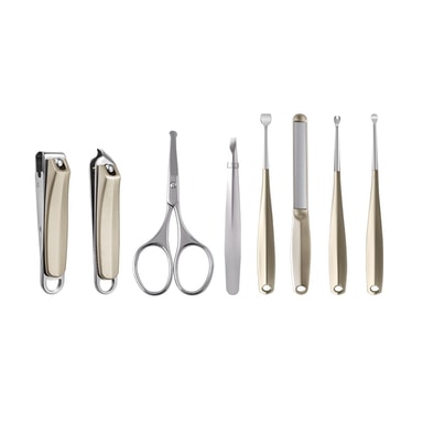 Allsidig pleiesett: Dette omfattende 8-delers settet inneholder alt du trenger for negl- og pleie av profesjonell kvalitet. Fra neglklippere og en neglefil til pinsett og en ørepenn, dette settet har alle dine viktige verktøy dekket.