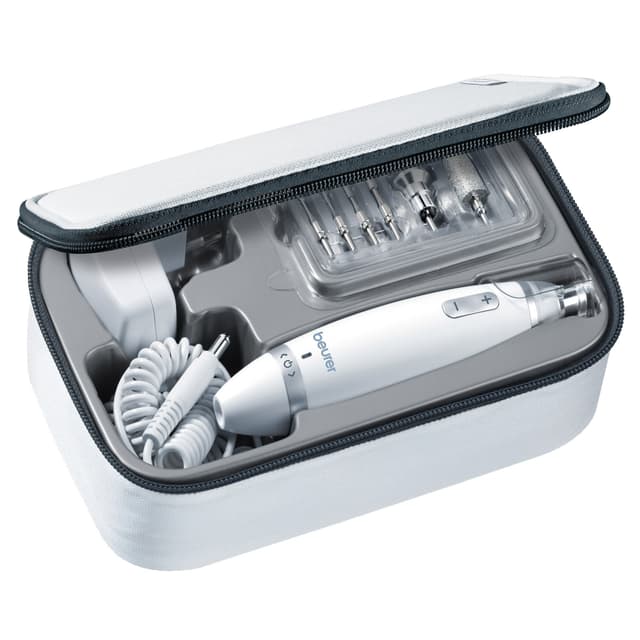 Med dette kombinerte manikyr- og pedikyrsettet fra Beurer ser det ut som du kommer rett fra skjønnhetssalongen selv om behandlingen er utført hjemme. Beurer MP 62 kommer med justerbar hastighet, klar LED-belysning og 10 tilbehørstupper av høy kvalitet. Det hele oppbevares i en praktisk pose.