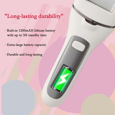 Digitalt display og vanntett: Den integrerte LED-digitaldisplayet viser tydelig gjenværende batterilevetid, og sikrer at du aldri blir tatt på sengen midt i en pedikyr. Den 4-nivås vanntette designen gir mulighet for sikker bruk i dusjen eller badekaret, noe som gjør rengjøringen til en lek. Denne funksjonen forbedrer bekvemmeligheten og hygienen, slik at du sømløst kan innlemme fotpleie i rutinen din. Den vanntette konstruksjonen sikrer også enhetens levetid, beskytter den mot vannskader og forlenger levetiden. Nyt fleksibiliteten ved å bruke den våt eller tørr for optimale resultater.
