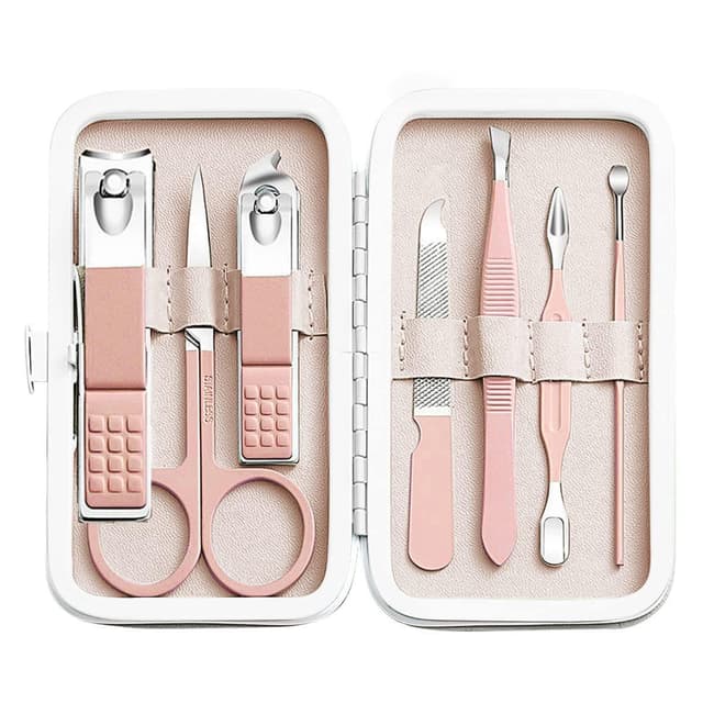 Alt du trenger: Praktisk sett for kroppspleie med totalt 7 verktøy for manikyr, pedikyr og ansiktspleie.