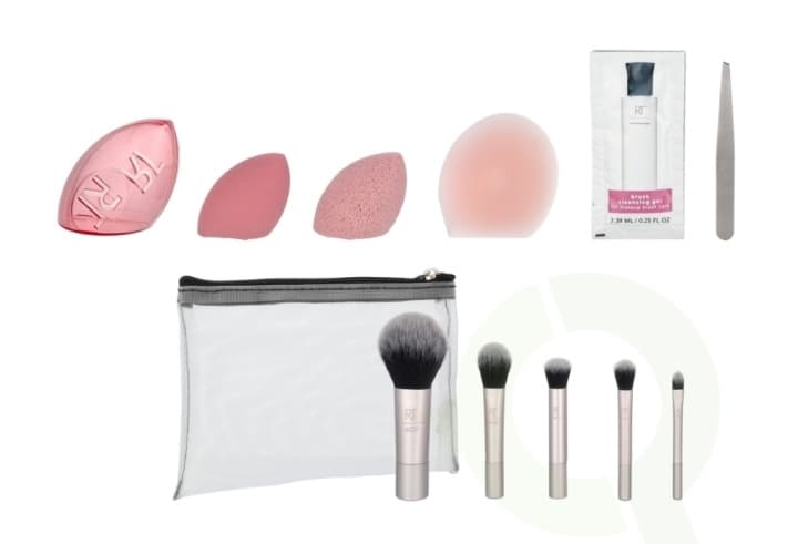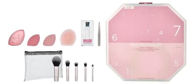 Real Techniques 12 Days Of Glow Adventskalender 12 deler Rensesvamp/Complexion Sponge/Travel Sponge Cage/Mask Applicator/5 børster/Brush Cleanser Gel/Tweezers/Pouch