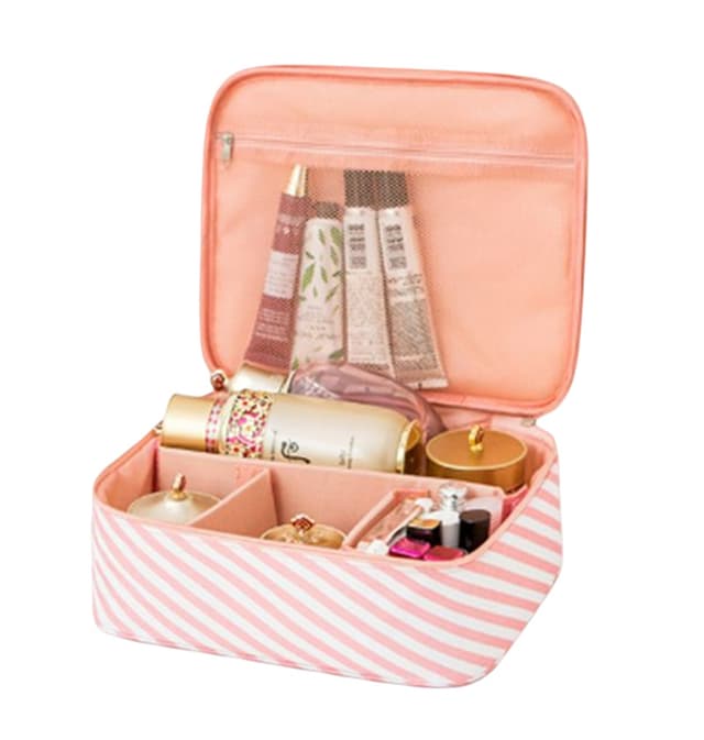 Laget av Oxford-stoff, vanntett og lett. Vesken har flere rom, nok kapasitet til å oppbevare kosmetikk, sminkeverktøy og mer. Hold styr på dine daglige saker.