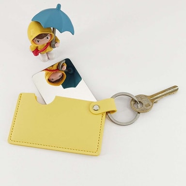 Kreativt Mini PU Lær Sminkespeil med Nøkkelring Gul