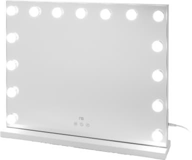 Re Hollywood 15 LED sminkespeil har 15 LED-pærer, berøringskontroller, justerbar lysstyrke og tre fargemoduser. Det gir deg klart, sterkt lys for perfekt sminke hver gang.Les mer om produktet