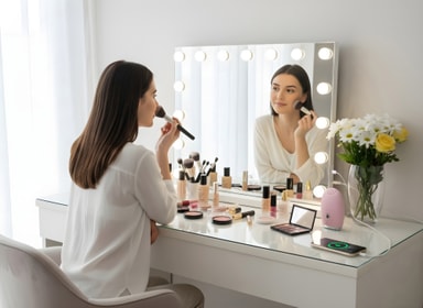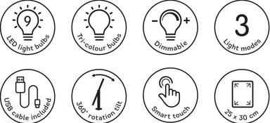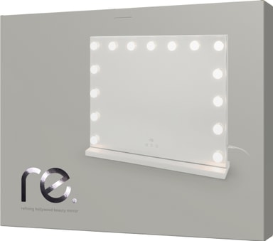 re. Hollywood 15 LED sminkespeil har 15 LED-pærer, berøringskontroller, justerbar lysstyrke og tre fargemoduser. Det gir deg klart, sterkt lys for perfekt sminke hver gang.Les mer om produktet