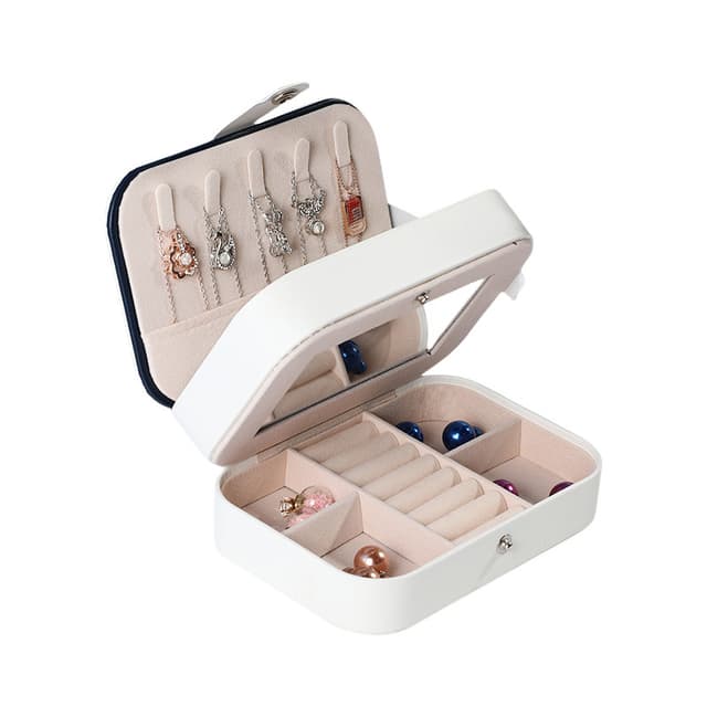 Speildesign: Lokket har et innebygd speil, noe som gjør din daglige smykkerutine enda mer praktisk.