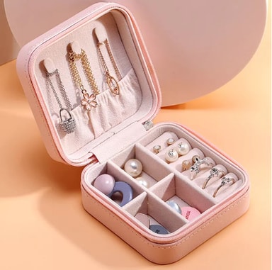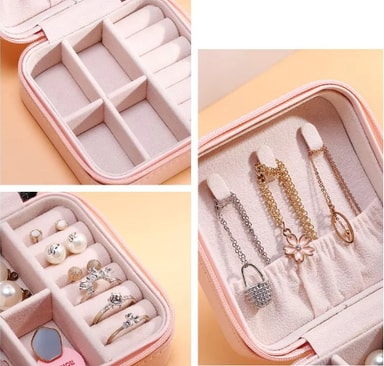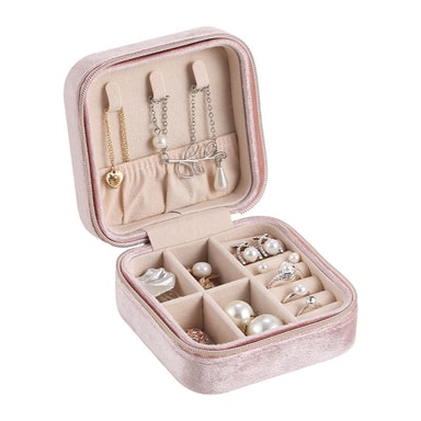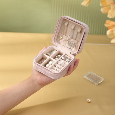 Liten smykkeoppbevaring med slitesterk fløyel på utsiden og mykt fløyelsfôr på innsiden. Et smykkeskrin beskytter smykkene dine mot riper og støv og holder ringer, halskjeder og øredobber i orden.