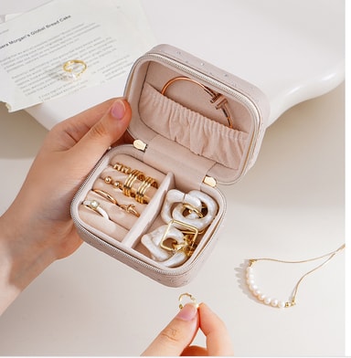 Kompakt og bærbar: Dette smykkeskrinet er perfekt for reiser eller for å holde hverdagssmykkene dine organisert. Den kompakte designen gjør at den tar minimalt med plass, både i vesken og hjemme.
