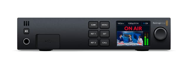 Med 10G Ethernet på Blackmagic Studio Converter kan du koble alle kamerasignaler ved hjelp av kun én Ethernet IP-tilkobling. Det betyr at kamerafeed, returprogramfeed, tidskode, referanse, tally, talkback og kontroll alle blir sendt nedover en enkel kabel. Det er de samme fordelene med SMPTE-fiber, men standard 10G kobber Ethernet-kabel er mye lavere kostnad. Blackmagic Studio Converter tillater breakout av alle video-, lyd- og talkback -tilkoblinger i studioenden. Den inkluderer også en massiv strømforsyning som driver kameraet nedover Ethernet-kabelen, slik at du ikke engang trenger en strømkilde i nærheten av kameraet.
