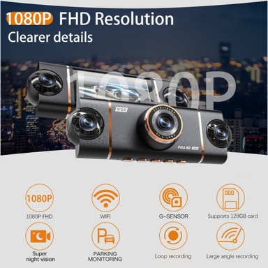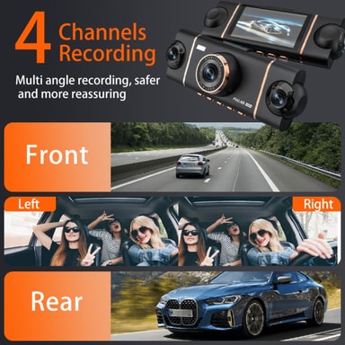 Fullstendig firekanals opptak: Fang opp alle vinkler med dette firekanals dashbordkameraet, med linser foran, til venstre, til høyre og bak. Dette gir full dekning rundt kjøretøyet ditt, og sikrer at ingen detaljer går tapt. Samtidig opptak fra alle fire kameraene gir enestående sikkerhet og bevis i tilfelle ulykker eller hendelser. Ideell for profesjonelle sjåfører, familier og alle som søker maksimal beskyttelse på veien. Dette systemet gir trygghet med sine omfattende overvåkingsmuligheter. Quad-linseoppsettet sikrer at du har en fullstendig oversikt over alt som skjer rundt kjøretøyet ditt, noe som gjør det til en uvurderlig ressurs for ulykkesdokumentasjon og sikkerhet. Kompatibel med biler fra merker som Volvo, Volkswagen og Skoda.