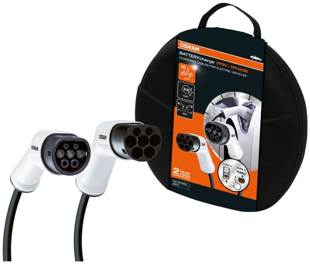 Osram ladekabel til bil 6120176 er kompatibel med elbiler og hybridkjøretøy. Gjennom den 5 m lange kabelen leverer den en ladeeffekt opptil 7,2 kW/32A. Kabelen er IP65- og IK10-sertifisert og leveres med et praktisk oppbevaringsetui.Les mer om produktet