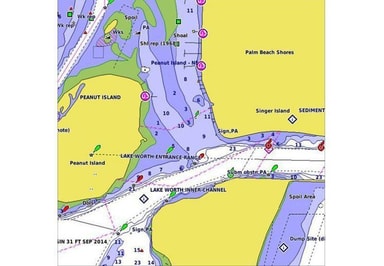 Vårt avanserte diagramtilbud Avledet fra offisielle diagrammer og private kilder for å gi navigasjonshjelpemidler, spot-lydinger, dybdekonturer, tidevann og strømmer og detaljerte havner og marinaer Dybdeområde skyggelegging for opptil 10 dybdeområde
