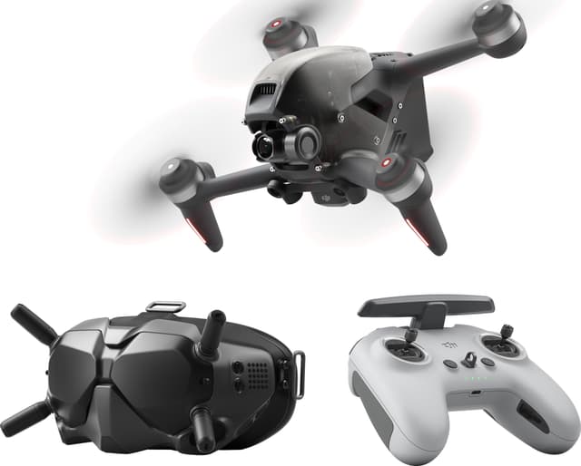 DJI FPV Combo er alt du trenger for en ultimat flyopplevelse i én enhet. Combo kommer med drone, fjerkontroll, DJI FPV Goggles V2, alle nødvendige kabler, lader, dronebatteri og gimbal-beskytter.