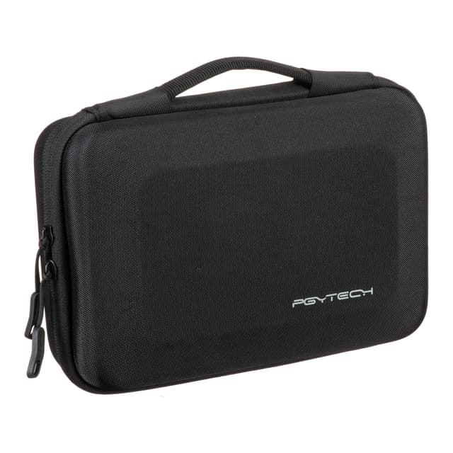 PGYTECH Carrying Case er en kompakt håndveske med glidelås og et vanntett skall av hardt stoff. Den passer Osmo Pocket gimbal eller Osmo Action kamera pluss tilbehør som et mini stativ, forskjellige fester, minnekortlesere, korte kabler og mer. Seks sammenleggbare skillevegger er inkludert for å tilpasse lagringsplassen etter behov. Skallet har en sikker innerlomme og en tilbehørspakkeholder med ekstra lommer og stropper.