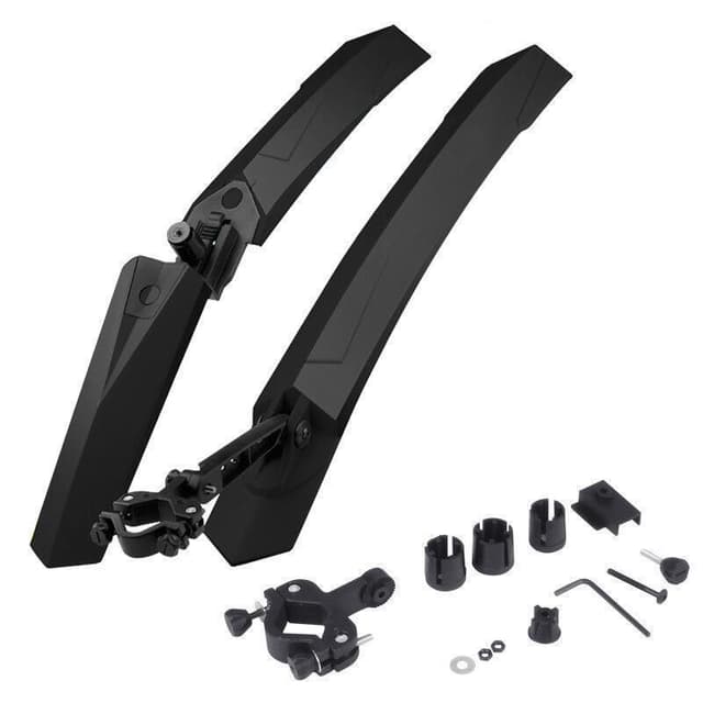 Sprutbeskyttelse for sykkel: En gjørme hindrer deg i å skitne og dynke klærne mens du sykler. Vinkelen mellom sprutbeskyttelsen og sykkeldekket er justerbar.