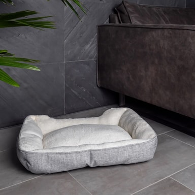 Den myke overflaten inviterer deg til å krølle deg sammen komfortabelt. Den hevede kanten støtter hundens eller kattens hode og nakke. En anti-skli overflate på bunnen hindrer puten i å skli, noe som gjør den enkel å ta av og på.