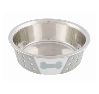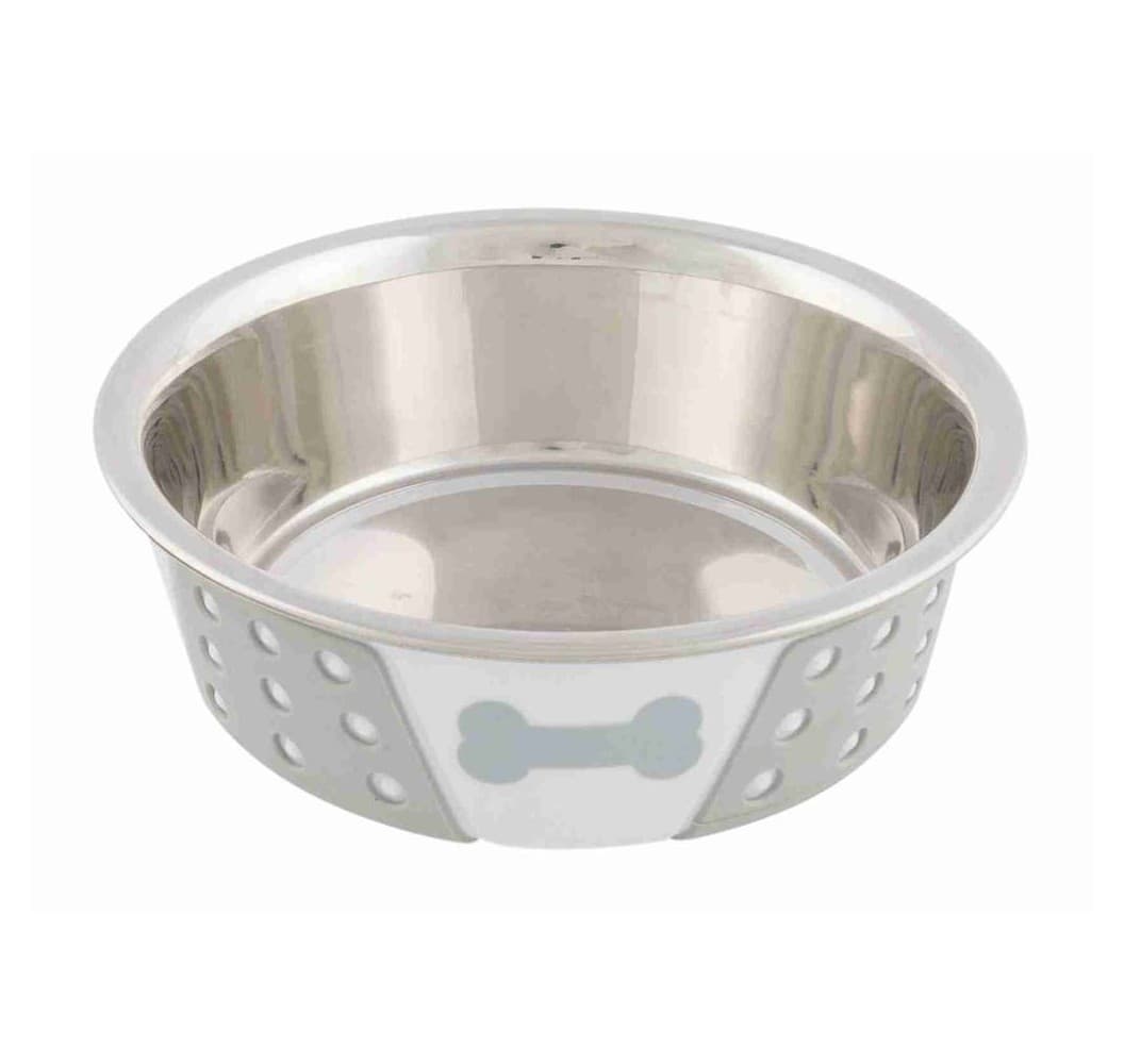 Skål i rustfritt stål med plastbelegg og silikoninnsatser sklisikre på grunn av forskjellige silikonmotiverLes mer om produktet