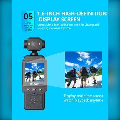 Versatile 360° rotation: 360-graders rotasjonsfunksjonen gir fleksible og kreative skytevinkler. Enten du trenger å ta et bilde av deg selv, en landskapsvisning eller noe i mellom, tilpasser dette kameraet seg dine behov. Den roterende linsen sørger for at du aldri går glipp av det perfekte bildet, og gir enestående allsidighet i å fange omgivelsene dine. Perfekt for vloggere, eventyrere og alle som ønsker å dokumentere opplevelsene sine fra unike perspektiver. Denne funksjonen kombinert med nattesynsfunksjonen sikrer høykvalitetsopptak selv under dårlige lysforhold. Nyt friheten til å utforske kreativiteten din med dette roterende action-kameraet, perfekt for forskjellige scenarier som vlogging, utendørssport eller reisedokumentasjon.