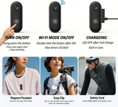 4K Mini handsfree bodycam er et kompakt POV-kamera som gjør det enkelt å ta opp video og bilder helt handsfree. Den lille og lette designen gjør at kameraet enkelt kan festes til klær, hjelmer eller utstyr, og det passer perfekt for vlogger, sykling, reiser, sport og hverdagsopptak. Kameraet spiller inn i opptil 4K og har innebygd lyd, Wi-Fi-tilkobling samt flere monteringsmuligheter for fleksibel bruk.