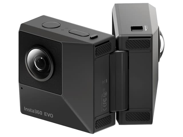 Insta360 evo er et kamera som har mulighet for å både 3d-video og 360-video, begge deler med flowstate stabilization som holder videobildet i ro,slik at opptakene blir jevne og behagelig å se på. Kameraet kan brettes ut, slik at kameralinsene blir som to øyne og lager video i 3d. Bretter man kameraet sammen igjen, går det automatisk over til 360-modus, og kamera filmer i alle retninger samtidig. Mulighet for opptak i 5,7k og stillbilder på hele 18mp. Kameraet kan kobles til smarttelefon med wifi for live bilde og instillinger på kamera, man kan også styre kamera uten tilkobling av telefon. du velger selv: 3d-kamera eller 360-kamera!