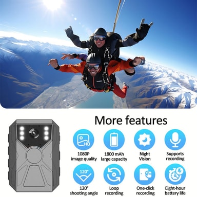 High-Definition Recording: Ta krystallklare opptak med 1920x1080-oppløsningen, og sørg for at hver detalj blir registrert med presisjon. COMS-objektivet forbedrer bildekvaliteten og gir skarpe og levende videoer og bilder. Denne HD-funksjonen er avgjørende for politi, sikkerhetspersonell og friluftsentusiaster som krever pålitelig og detaljert visuell bevis. Kameraets evne til å ta opp i HD gjør det egnet for å fange viktige øyeblikk i ulike scenarier, fra å dokumentere hendelser til å ta opp actionfylte eventyr.