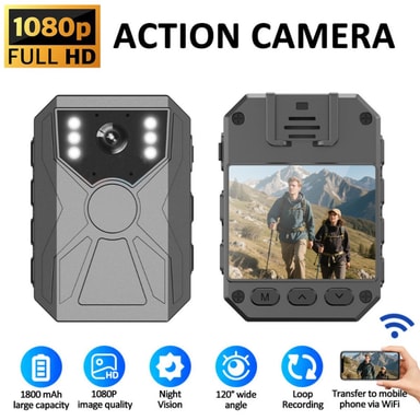 Extended Battery Life: Utstyrt med et 1800mAh batteri, tilbyr dette kameraet en kontinuerlig opptakstid på 4-5 timer, og sikrer at du ikke går glipp av noen kritiske øyeblikk. Ladetiden på 2,5 timer gir rask påfylling, slik at du er klar for action. Denne utvidede batterilevetiden er avgjørende for politibetjenter på lange skift, sikkerhetsvakter som overvåker lokaler og utendørseventyrere som utforsker fjerntliggende steder. Den pålitelige batteriytelsen sikrer at kameraet forblir operativt når du trenger det mest, og gir trygghet og uavbrutt opptak.