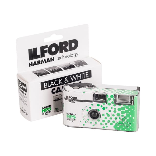 Det brukervennlige Ilford HP5 Plus engangskameraet gir ferske fotografer muligheten til å prøve ekte svart/hvitt-fotografering. Kameraet er attraktivt pakket med sterke monokrome bilder og slående grafikk. Den har 27 eksponeringer av den utmerkede ILFORD HP5 Plus 400 ISO filmen.